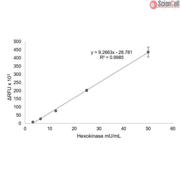 In ScienCell TM Hexokinase Activity Assay kit-Fluorometric (HK-FL), glucose is converted to glucose-6-phosphate by HK, the glucose-6phosphate is oxidized by glucose-6-phosphate dehydrogenase to form NADPH.