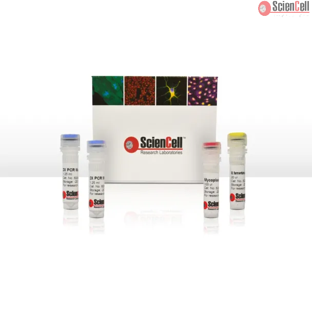 ScienCell™ Mycoplasma PCR Detection Kit is a 16S rRNA-based PCR assay consisting of 2×PCR master mix (which includes PCR buffer, DNA polymerase and dNTPs), mycoplasma primer set, and a positive control, which is noninfectious genomic DNA (gDNA) of M. fermentans.